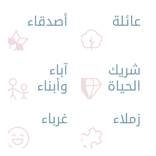 محادثات الأهل والأصدقاء تختلف عن محادثات الزملاء والغرباء، لذلك قسمت الأسئلة لتصنيفات حسب المجموعة التي تلعب معها.